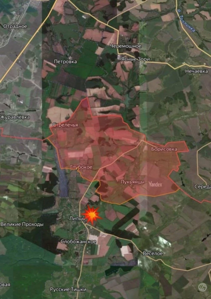 На Сумском направлении противник вновь контратаковал в районе Тёткино. В районе Юнаковки не стихают бои. Сообщают, что ВС РФ зацепились за окраины Варачино.
