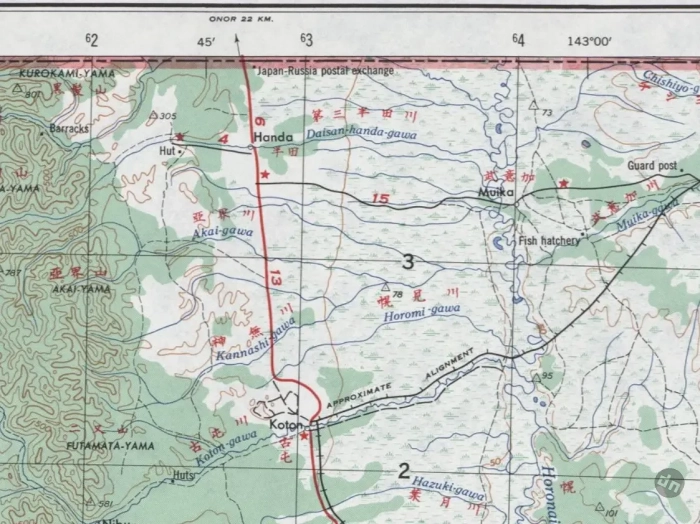 Японцы на левом, западном берегу Пороная, у подножия сопок обнаружили относительно пологую и сухую полосу между сопками и болотами поймы, шириной примерно 1,5 км, в некоторых местах до 5-6 км, по которой была проложена Главная военная дорога и в которой были построены населенные пункты.