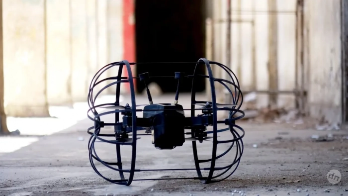 БПЛА «Тарнеголь» / Rooster имеет любопытную конструкцию. По сути, это квадрокоптер с привычным набором устройств, помещённый внутри большого колеса. Такая архитектура позволяет беспилотнику не только летать, но и ездить, а также защищает его от некоторых внешних воздействий.