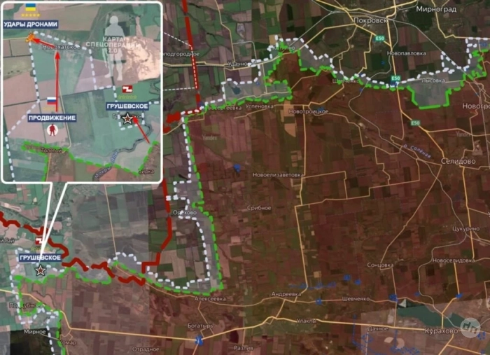 На Покровском фронте ВС РФ продвигаются южнее Котляровки. По данным с мест, наши установили контроль над Новониколаевкой, выбили врага из Новосергеевки. Есть успехи на северо-востоке от Покровска: наши прорвались в Фёдоровку, заняли большую часть Новоторецкого. Основная цель российских войск - Родинское, важный логистический узел ВСУ в Покровско-Мирноградской агломерации.