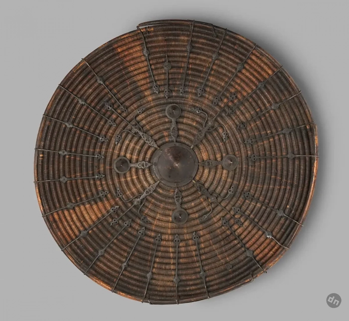 А это не щит, а всего лишь умбон, скорее всего, как раз от такого плетеного щита. Турецкий, XVI–XVII вв. Метрополитен музей, Нью-Йорк