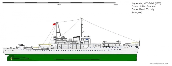 Свою новую жизнь многострадальное судно начало в социалистической Югославии. В 1948 году его подняли с 22-метровой глубины, и в 1952 году после ремонта и модернизации на судоверфи в Пуле под названием «Galeb» («Чайка») стал учебным кораблем югославского ВМФ.