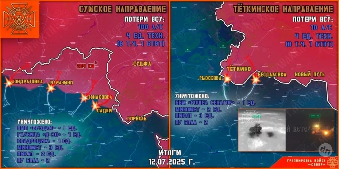 Новости последних часов из зоны СВО, свежая карта боевых действий, сводка боевых действий на воскресенье, 13 июля 2025 года, - в материале нашего сайта N4k.