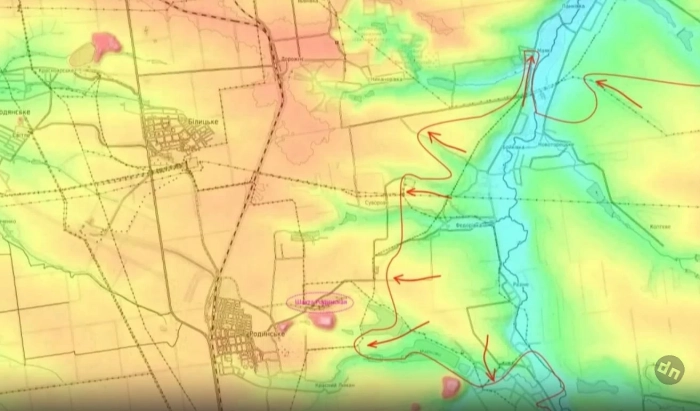 "Вернее, пока к Родинскому они не вышли, но они вышли к шахте Родинская, до неё им осталось всего лишь один километр, а также уже вышли на окраину населенного пункта Красный Лиман. Чем интересен Красный Лиман? Он очень длинное такое село, тянется на несколько километров по балке и, что самое важное, жилая застройка Красного Лимана плавно переходит в жилую застройку Родинского. Таким образом, если мы зацепимся за жилую застройку Красного Лимана, мы по ней, думаю, довольно быстро пойдем на Родинское и попытаемся зайти в этот городок", - уточнил военный эксперт.