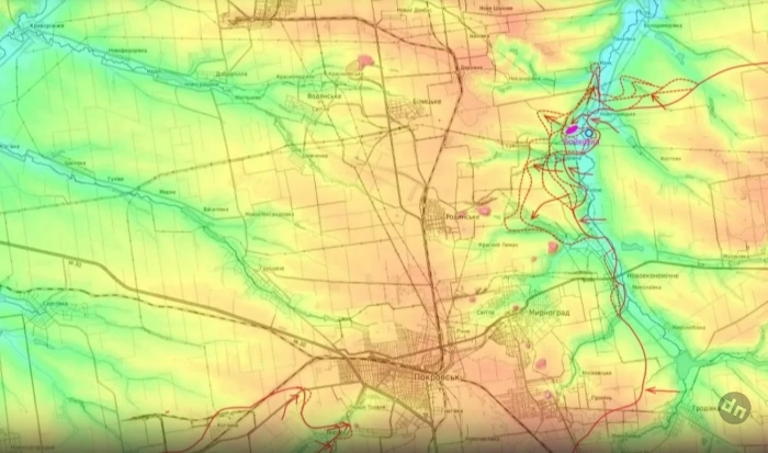 На самом деле, для противника, как мы видим по карте, в Покровске ситуация близка к катастрофической. Уже все линии коммуникации довольно серьезно перехвачены, да, понятно, что-то еще в город проскакивает, но снабжение все меньше и меньше, а группировка там скопилась очень и очень большая и требует ежедневного большого снабжения. Это даже не суджанская группировка, это таких суджанских группировок, по-моему, минимум 3, а то и может больше.