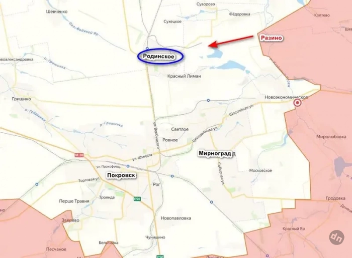 ВС РФ начали наступление на город Родинское, пытаясь перерезать снабжение гарнизона ВСУ в Покровске и Мирнограде