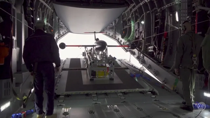 В 2022 г. компания Airbus совместно с несколькими другими организациями разработала оригинальную систему размещения беспилотников внутри грузовой кабины с запуском через хвостовой грузовой люк. На создание этого изделия потратили всего полгода, и в декабре провели первые испытания.