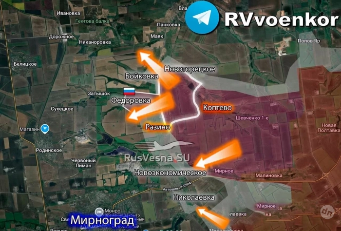 Как сообщают российские источники, штурмовые подразделения группировки войск «Центр» проводят обходную операцию, избегая прямого штурма укреплённых городов Покровск и Мирноград. Вместо этого российские войска сосредоточились на занятии стратегически важного Родинского, через который проходит основная линия снабжения украинских сил в регионе.
