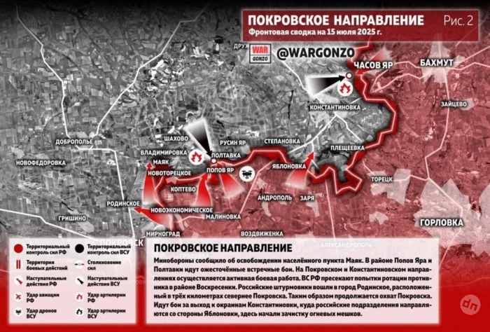 ВС России ведут ожесточённые бои на северной окраине Новоэкономического на Покровском направлении и движутся вперёд: свежие данные на 15.07.2025