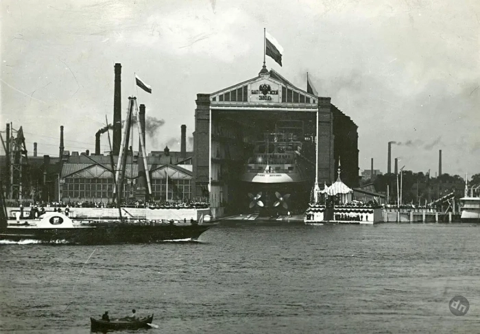 Балтийский завод был основан в 50-х годах XIX века англичанином Карром и был при рождении всего лишь чугунолитейной мастерской. В 1863 году в компанию с Карром вступил механик М. Макферсон, и возможности предприятия были расширены. Теперь оно могло заниматься прокаткой железа, строительством локомотивов и боевых кораблей. Морское министерство отнеслось к этому начинанию в высшей степени позитивно, дав хорошие заказы: предприятием было построено три монитора и броненосный башенный фрегат «Адмирал Лазарев». Также Балтийскому заводу были заказаны два клипера и броненосный фрегат «Герцог Эдинбургский», а также выданы ссуды общим размером до половины стоимости возводимых предприятием сооружений.