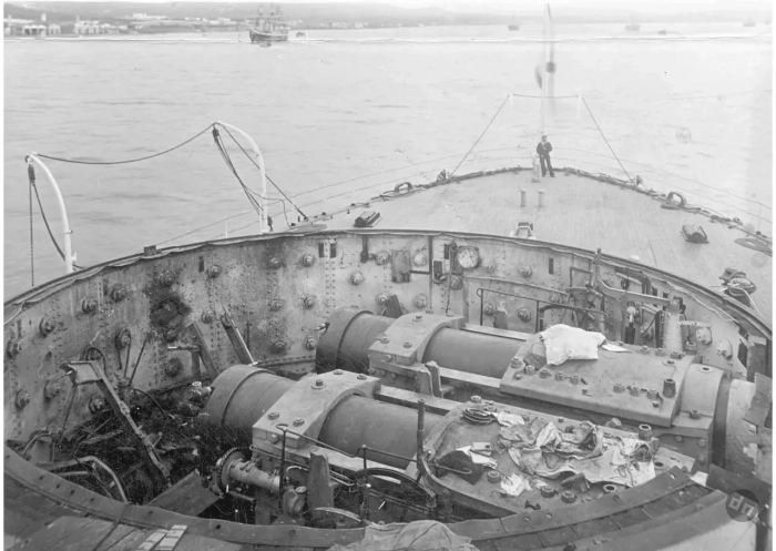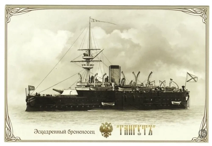 «Два наших новейших броненосца «Сенявин» и «Ушаков» находятся теперь в Учебно-артиллерийском отряде для ознакомления будущих комендоров с современными орудиями. Однако 10-дм пушки на них бутафорские. Стрелять из них запрещено, так как вследствие ошибки в чертежах они рвутся. Тем не менее, орудия было решено все-таки поставить на корабли, чтобы те хотя бы для вида походили на броненосцы».
