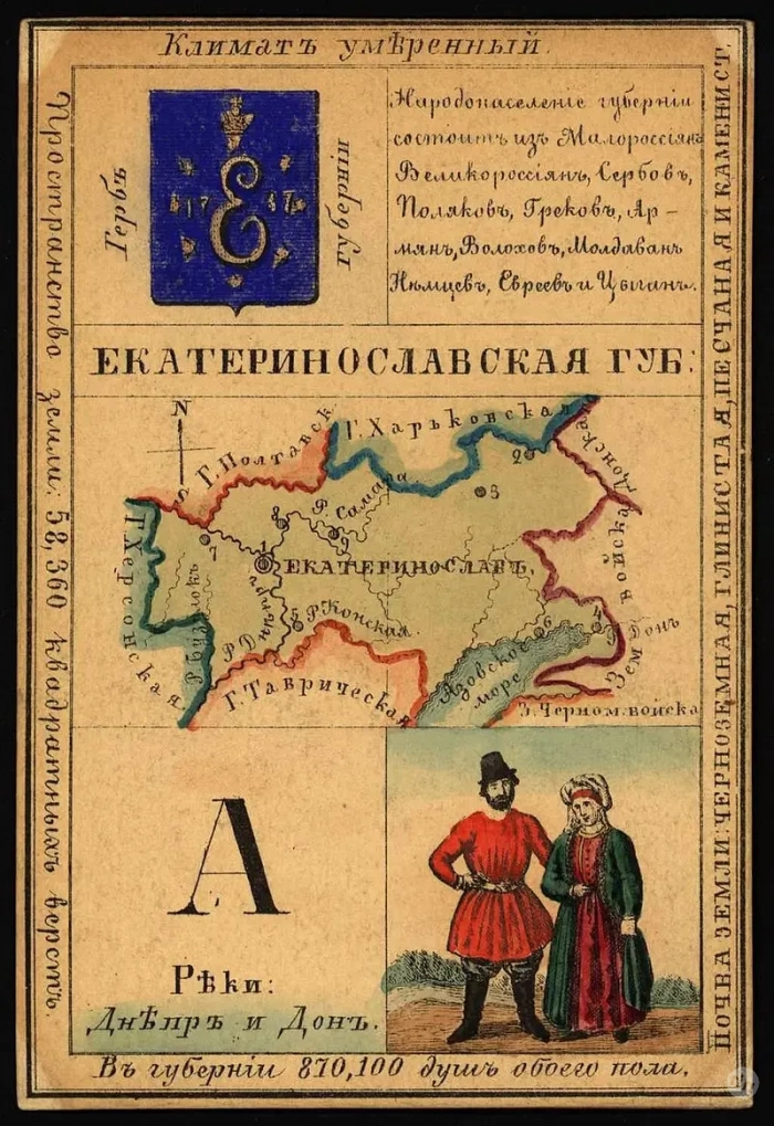 На карте - большая Екатеринославская губерния. Современная Днепропетровская область занимает её западную часть.