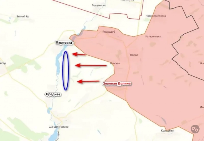 ВС РФ сделали рывок от Зелёной Долины и вклинились в оборону ВСУ, прижимая противника к реке Нитриус на Красно-Лиманском направлении