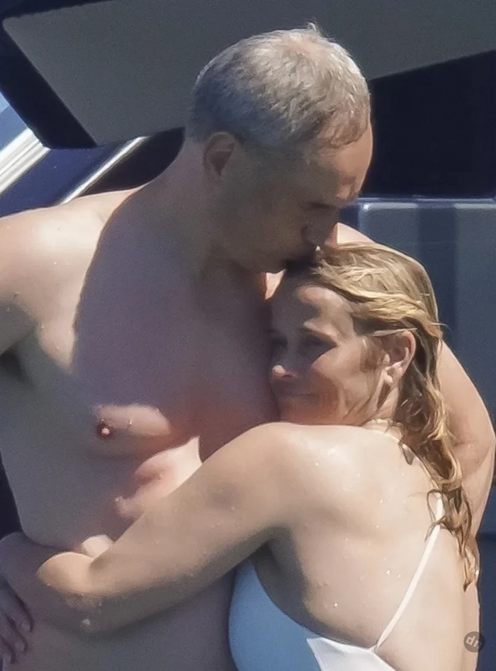 Риз Уизерспун отдыхает на яхте в Сен-Тропе в компании бойфренда, 57-летнего немецкого финансиста Оливера Хаармана. Снимки пары на борту лодки попали в сеть.