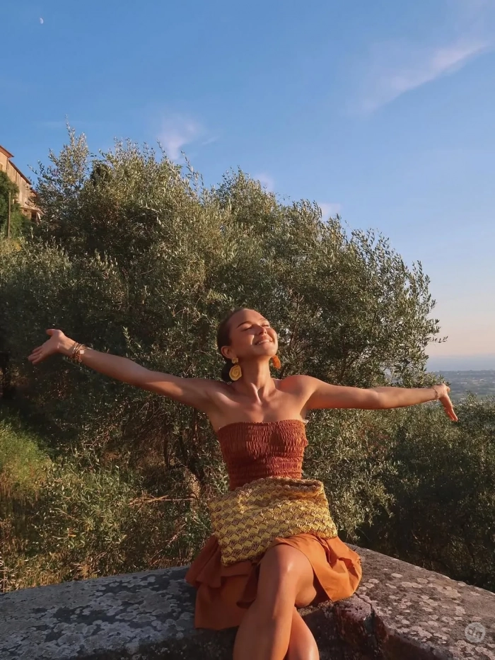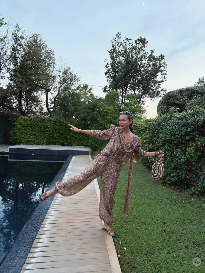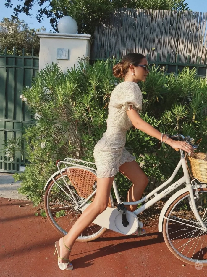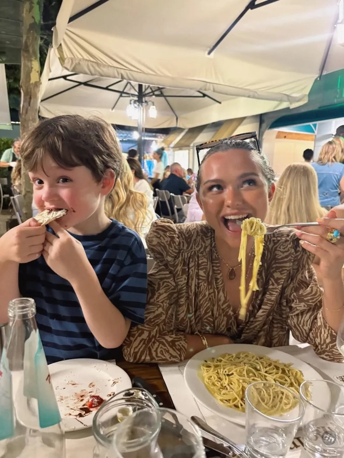 На отдыхе инфлюенсер и основательница бренда одежды Dress by Stesha выгуливает модные образы, катается на велосипеде по итальянскому курорту в платьях и на каблуках, ест пасту в компании родителей и семилетнего брата Марка, делает покупки в бутике Prada и просто наслаждается отпуском.