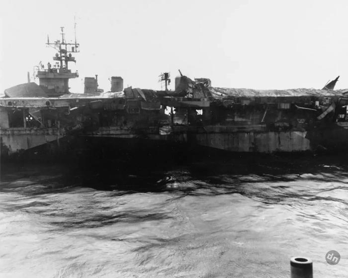 Авианосец «Yorktown» в бою у о. Мидуэй (4 июня 1942 г.) получил повреждения от попадания трех авиабомб и не менее двух торпед. Авианосец накренился и потерял ход, но остался на плаву. Только через двое суток после этого он был торпедирован японской лодкой и затонул.