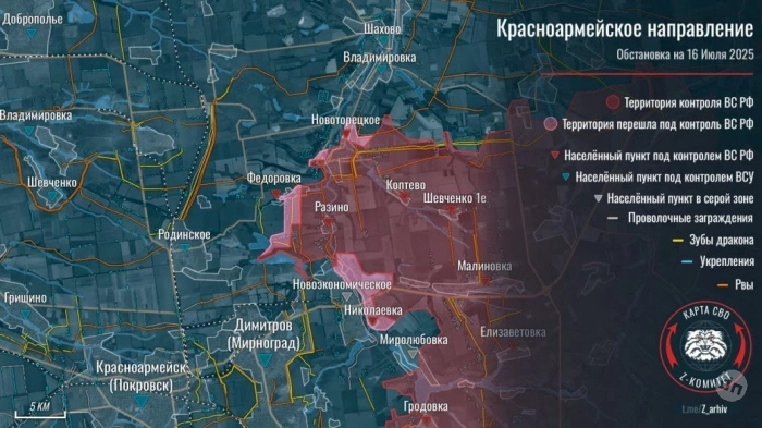 На Покровском (Красноармейском) направлении ВС России создают условия для охвата Мирнограда с севера. Наши войска пробиваются в направлении Родинского, что в случае успеха позволит взять под контроль северную дорогу в Мирноград. Идут бои высокой интенсивности.