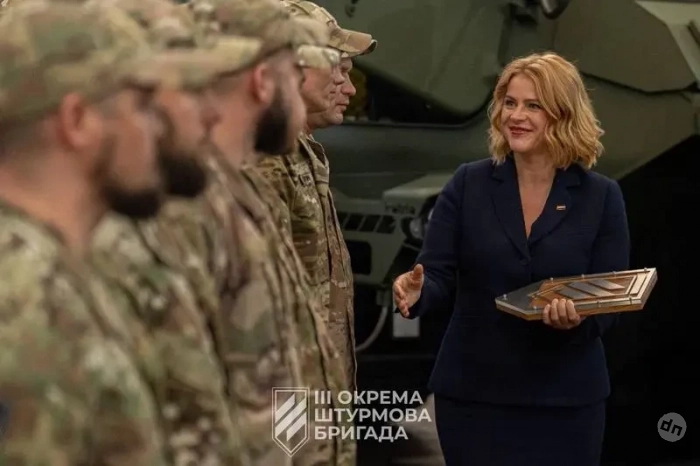 «Мы гордимся поддержкой Украины»: Премьер-министр Латвии собственноручно передала бригаде «Азов» новые бронетранспортёры Patria 6х6