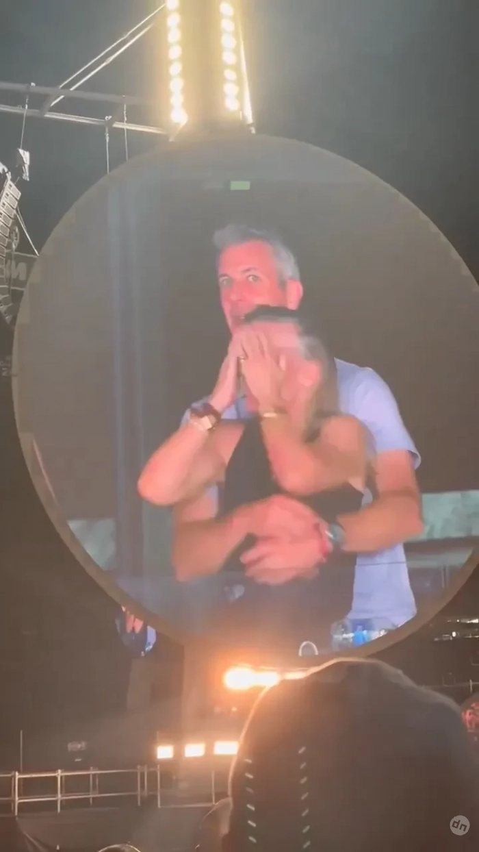 Во время выступления группа развлекала зрителей игрой "камера поцелуев" (популярная забава на массовых мероприятиях, когда на экран выводят случайные пары). В какой-то момент оператор запечатлел пару, обнимающуюся в VIP-ложе. Но вместо привычной реакции влюблённые повели себя странно: девушка резко закрыла лицо руками и отвернулась, а её спутник быстро присел, стараясь спрятаться за ограждением. Лидер Coldplay Крис Мартин прокомментировал это в прямом эфире: "О, посмотрите на этих ребят. Либо они кому-то изменяют, либо очень стеснительные".