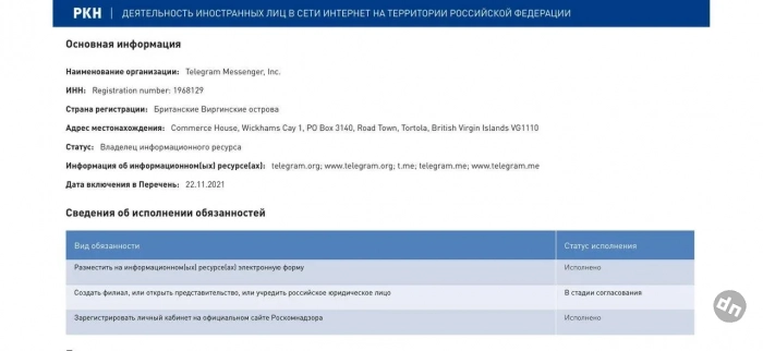 Ранее издание Hi-Tech Mail сообщило со ссылкой на реестр Роскомнадзора, что Telegram якобы готовит открытие представительства в рамках закона о "приземлении" (он требует от крупных иностранных IT-компаний с аудиторией более 500 тыс. пользователей в России зарегистрировать юрлицо и наладить обратную связь с пользователями). По заявлению СМИ, процесс уже находится в стадии согласования.