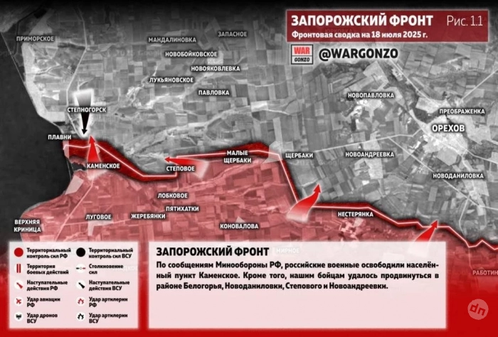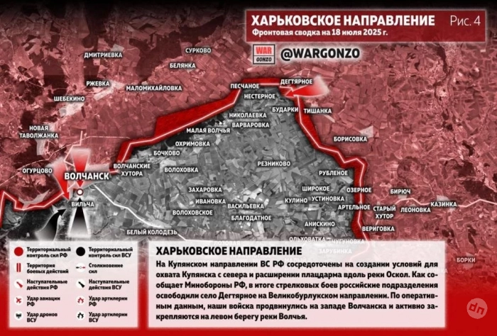 Карта боевых действий на Украине. Ситуация в зоне СВО на 18.07.2025