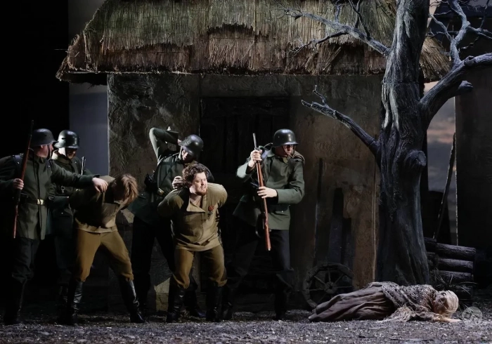 Фото Анны БутманФото Анны Бутман"Семён Котко" — первая опера, которую Сергей Прокофьев написал после возвращения в СССР. В её основе лежит повесть Валентина Катаева "Я — сын трудового народа". События разворачиваются в 1918 году на Украине в условиях немецкой оккупации. Главный герой, артиллерист Семён Котко, возвращается с фронта и сталкивается с новой реальностью на родной земле. В главных партиях выступили Игорь Морозов, Евгения Сегенюк, Алина Черташ, Владислав Попов, Михаил Казаков, Елена Манистина, Светлана Лачина и другие.