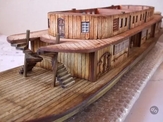 Причина популярности моделей миссисипских пароходов проста. В них нет «мучительного» в изготовлении такелажа парусного корабля, и к тому же это ведь еще и сугубо мирное судно, хотя модели именно военных кораблей во все времена пользовались наибольшей популярностью. И тем не менее… Мирный пароход – это тоже очень красиво!