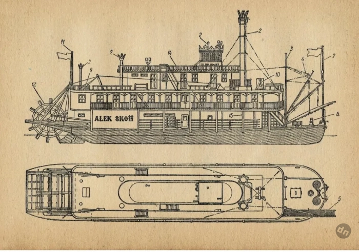 Артефакты истории техники. Сегодня у нас в некотором смысле день особый: 15 июля, середина лета, и «день исполнения желаний», вернее, одного моего давнишнего желания, напрямую связанного с нашим циклом о миссисипских пароходах 19 века. А было так, что в 1975 году, то есть ровно полвека назад, я купил книгу М. Михайлова и О. Соколова «От драккара до крейсера» с рассказами о различных кораблях и технологиях изготовления их моделей. Много там всего было интересного, но мне почему-то больше всего приглянулась модель парохода «Алек Скотт». Видимо, сказалась любовь к книгам Марка Твена. Но как и из чего сделать такую модель? В книге было всё просто: это взять, то приклеить, затем покрасить. Но как именно и из чего «это брать», «клеить» и «красить», не было в голове ни единой идеи.