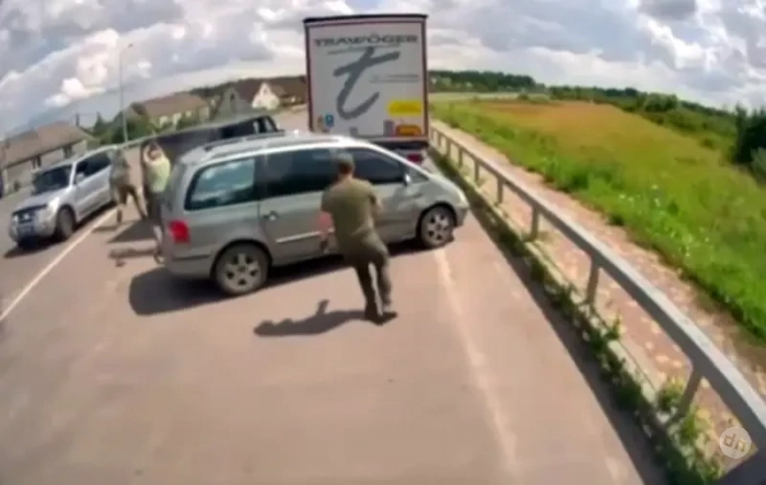 Забавный, но примечательный эпизод был заснят на камеру дорожного наблюдения. Сотрудники ТЦК на двух автомобилях на трассе настигли и остановили минивэн, намереваясь как минимум вручить повестку водителю или пассажиру, а скорее всего сразу отвезти на пункт сбора с последующим зачислением в ряды ВСУ и отправкой на фронт.