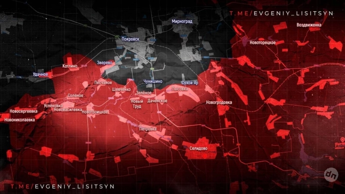 На Покровском направлении основной удар ВС РФ идёт севернее Мирнограда. Наши штурмуют Новоэкономическое, атакуют Красный Лиман и район шахты «Краснолиманская». Ведётся бой за линию Новоторецкое-Фёдоровка. Ночью мощно ударили по Павлограду - важному тыловому узлу ВСУ, сообщает военкор Евгений Лисицын.