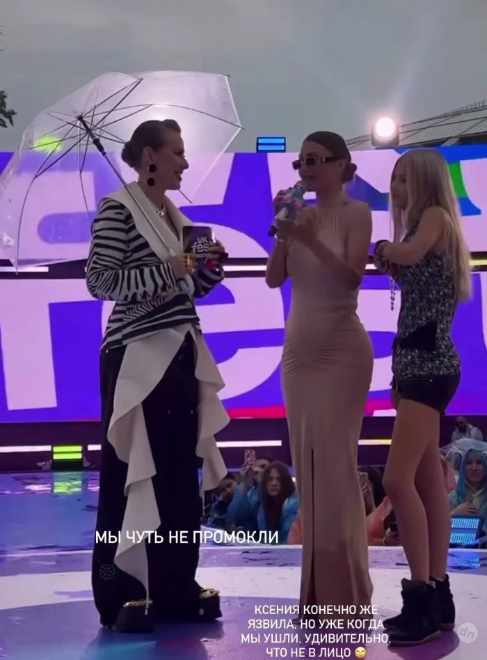 https://t.me/spletnik2006/36023Виктория Боня и АнджелинаКсения Собчак, которая была ведущей на VK Fest, сделала комплимент Виктории и отметила её успехи: "Полное преображение. Совершенно новая Виктория Боня с новым образом, с новым контентом. Хотела тебя похвалить и сказать, что просто удивительно, как ты в такие короткие сроки смогла абсолютно перестроить имидж и получить такую любовь зрителей в соцсетях". Впрочем, по словам Бони, Собчак всё же отпустила в её адрес несколько колкостей, но сделала это за глаза.