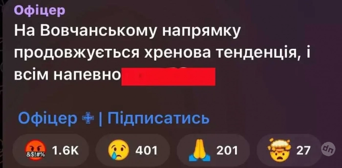 Значительное осложнение ситуации на Волчанском направлении подтверждает и сам противник. В малолитературных формулировках в мессенджерах украинские «волонтёры» и военные пишут о том, как ситуация для ВСУ обострилась в Волчанске, а также к востоку и к западу от него.