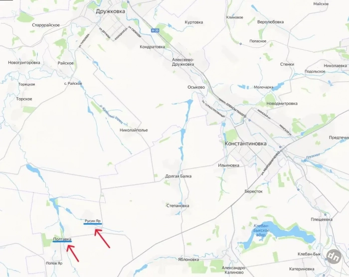 Позже стало известно о продвижении российских войск в районе сел Полтавка и Русин Яр, что в 11 километрах к юго-западу от Константиновки и в 15 км к югу от другого донецкого города Дружковка. Это минимальное расстояние до Дружковки с юга с начала СВО.