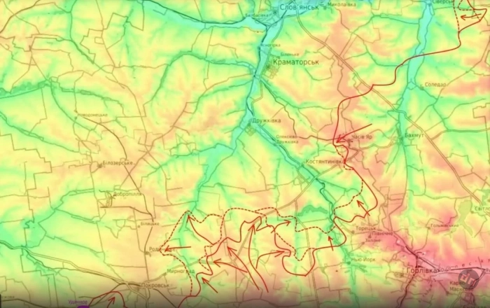 "Очень надеюсь, что мы противника здесь дожмем. А основной удар на Покровск 2-я армия наносит из района Зверево. Тот прорыв, который мы совершили из района Зверево через Леонтовича на север в район 1 мая постепенно расширяется. Наши части по тем данным, которые ко мне доходят, уже вышли на трассу М-30, которая проходится уже в городской черте Покровска и пытаются расширить узенький коридор. Они зашли по речушке, по лесистым берегам речушки и сейчас пытаются полностью закончить зачистку Леонтовича. Пока там еще есть очаги сопротивления противника", - проинформировал Подоляка.