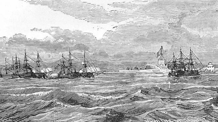 В состав флотилии Курбе вошли корабли не старые, но... колониальные. Флагманом стал «Байард» — барбетный броненосец второго класса, уменьшенная версия первоклассных броненосцев типа «Адмирал Дюпре», построенная для службы в колониях. Его главный калибр был представлен четырьмя 240-мм орудиями в двух бронированных барбетах — в носу и в корме, толщина брони не превышала 250 мм. «Атланта» — броненосный корвет с орудиями главного калибра 194-мм (да, у французов всё не как у людей, в том числе калибры корабельной артиллерии!). «Шаторено», самый старый из всех, — небронированный паровой корвет, построенный по проекту 1850 года, вооружённый 140-мм пушками. Для европейских вод всё это выглядело слабовато, но для Вьетнама — хватало. Помимо основных сил в распоряжении Курбе были вооружённый транспорт «Драк» и канонерки «Линкс» и «Випер». Транспорт «Аннамит» нёс десант из 600 морпехов и 100 местных стрелков.