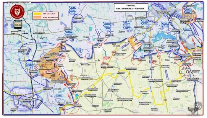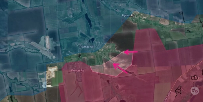 На Константиновском направлении продолжается наступление в районе Яблоновки и Александро-Калиново. Западнее наши продвинулись восточнее и северо-восточнее Попов Яра и штурмуют западную часть Полтавки.