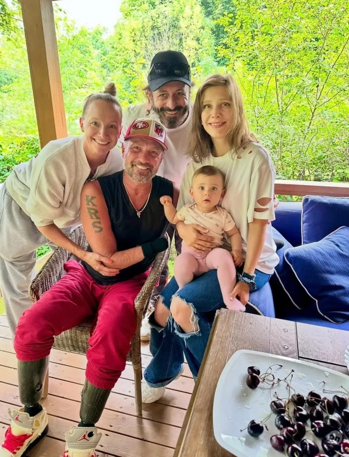 Оксана Домнина, Роман Костомаров, Илья Авербух, Елизавета Арзамасова с дочерьюНапомним, что Елизавета Арзамасова родила дочь Лию в августе прошлого года. У актрисы и 51-летнего фигуриста Ильи Авербуха есть также сын Лев, который появился на свет в 2021 году, спустя несколько месяцев после их свадьбы.
