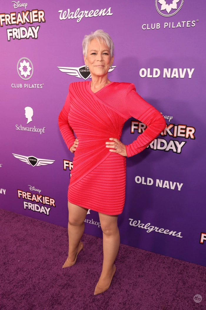 В Лос-Анджелесе состоялась премьера сиквела культовой комедии "Чумовая пятница". На красную дорожку мероприятия вышли Линдси Лохан и 66-летняя Джейми Ли Кёртис (в красном мини), которые вновь вернулись к своим ролям спустя 22 года после выхода оригинальной ленты.