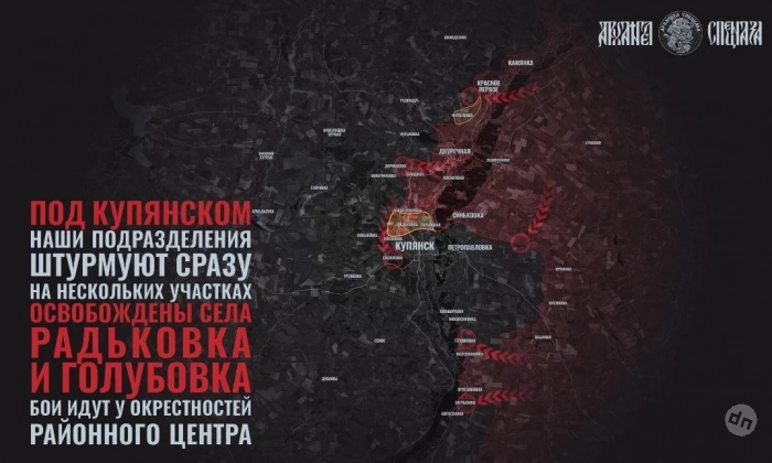 Что касается окрестностей Купянска, то наши передовые подразделения уже ведут бои за Московку и Соболевку, пытаясь взять Купянск в окружение.