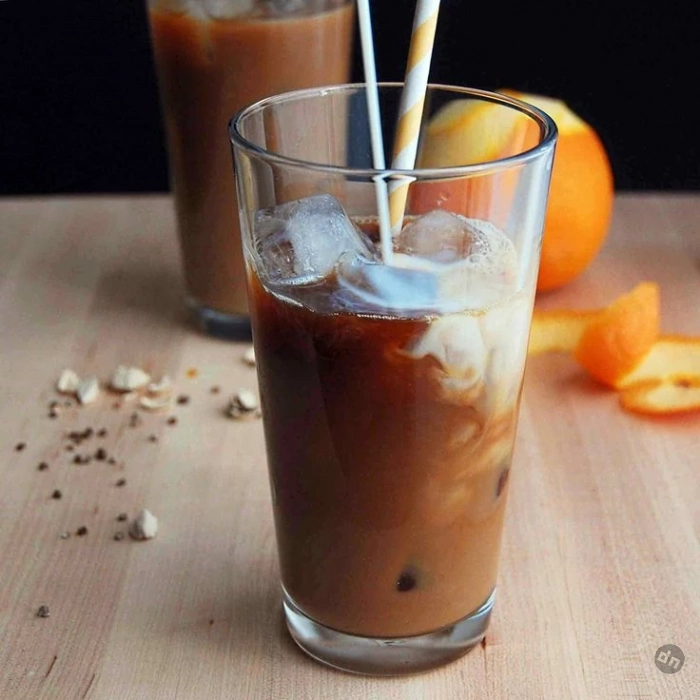 Крепкий кофе, лед, молоко — всё просто. Хотите сладкий вариант — добавьте сироп или мороженое.