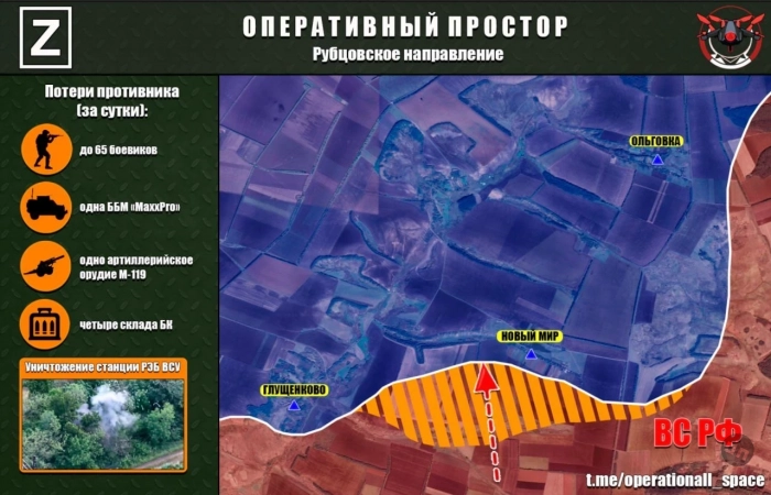 Также российские войска успешно продвигаются немного западнее, заняв один из жилых секторов в направлении села Плавни. В то же время ВСУ закрепились в лесополосе между позициями, где ВС РФ уже сформировали «карман».