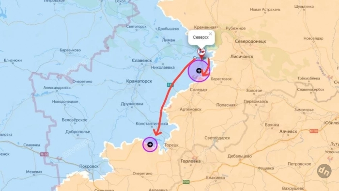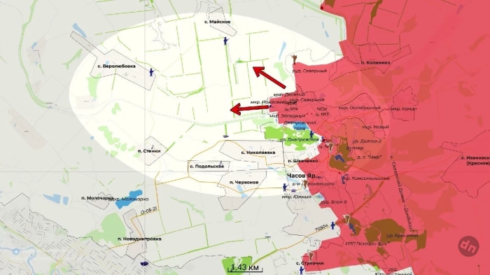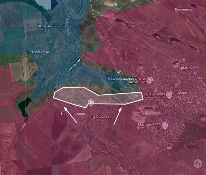 На Константиновском направлении ВС РФ закрепились в юго-западной части Полтавки и продвигаются в северную. Есть версия, что вместо удара по дороге в сторону Константиновки российская армия нацелена на стык между Покровском-Мирноградом и Константиновкой по направлению на Шахово и Торецкое. Если эта версия получит своё подтверждение, это будет означать, что наши войска могут нацелиться на выход в тыл гарнизонам ВСУ в Славянске и Краматорске. На этом же участке село Яблоновка полностью перешло под наш контроль, ВС РФ расширяют зону контроля вокруг. Продолжается наступление наших на север по направлению к Степановке и на восток в Александро-Калиново. На подступах к Александро-Калиново идут тяжёлые бои, наши атакуют с юга, смогли продвинуться до 600 м. ВС РФ взяли под контроль бОльшую часть Щербиновки. На восточном фланге идут бои в Александро-Шультино, а также в районе Леонидовки и Дылеевки.