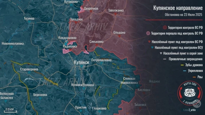 Карта боевых действий на Украине. Обстановка в зоне СВО на 24.07.2025