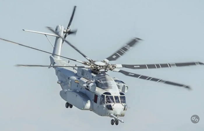 Несмотря на впечатляющие массу и размеры, СН-53К очень быстр, для вертолета, разумеется. Его максимальная скорость составляет 315 км/ч, а крейсерская — 290 км/ч. Это больше, чем у отечественных ударных вертолетов Ка-52 и Ми-28, у которых максимальная скорость составляет 300 км/ч, а крейсерская — 265 и 260 км/ч соответственно. Без сомнения, высокая скорость очень важна для транспортного вертолета, занимающегося высадкой десанта, — она позволяет не только уменьшить время этой самой высадки, но и минимизирует время нахождения в зоне, где вертолет может быть сбит средствами ПВО неприятеля.