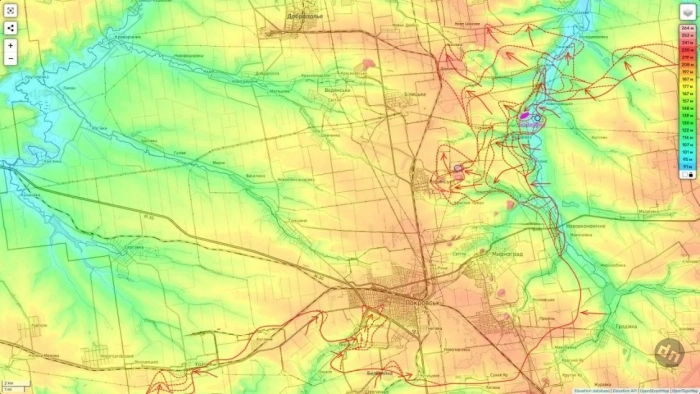 Судя по всему командование ВСУ, понимая катастрофичность положения своей группировки в районе Мирнограда и Покровска перестает обращать внимание на самую дальнюю часть охвата и все силы концентрирует на флангах, чтобы удержать их от распадения.