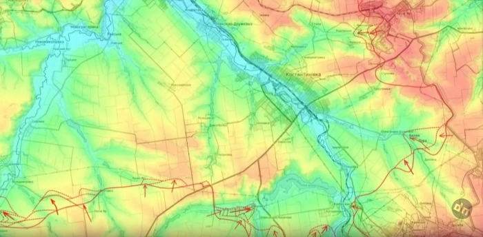 Одновременно разворачиваются ожесточённые бои южнее Клебан-Быкского водохранилища, где российские части практически полностью установили контроль над Александро-Калиново, а также завершили зачистку Щербиновки. Успешные действия на этом участке создают плацдарм для охвата украинской группировки и возможного удара по коммуникациям ВСУ в районе Константиновки.