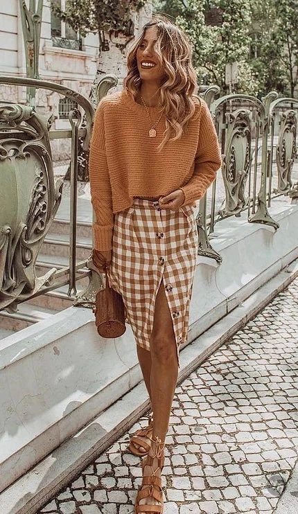 Чёрно-белые комплекты с клеткой — классика, которая не надоедает, особенно если играть с пропорциями и материалами. Серые оттенки с клеткой добавляют образу сдержанности и утончённости, а бежево-коричневые тона с клеткой создают атмосферу теплоты и уюта в стиле олд мани.
