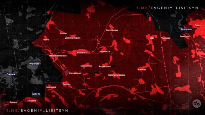 На Покровском направлении освобождено Зверево, идёт штурм Леонтовичей. ВС РФ также продвигаются в районе Новоэкономического и шахты «Капитальная». ДРГ фиксируются в Покровске и у Мирнограда.
