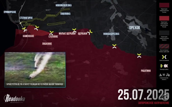 Южнее Зеленого Гая российские войска продолжили продвижение. После освобождения села Воскресенка силы РФ вошли в населённый пункт Малиевка, расположенный уже на территории Днепропетровской области, и полностью освободили его. Эта победа имеет важное символическое значение, так как Малиевка стала первым участком Днепропетровской области, перешедшим под контроль российских войск, что знаменует новый этап прорыва в регионе.