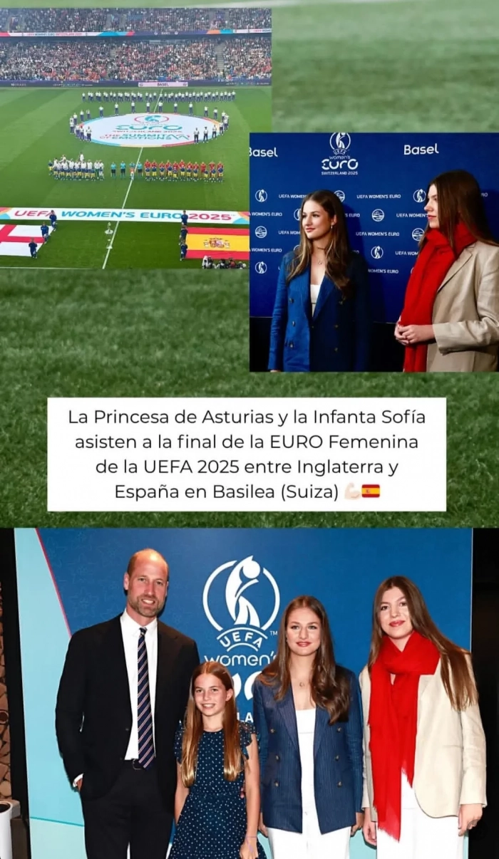 Принц Уильям с дочерью Шарлоттой, принцесса Испании Леонор и инфанта София посетили женский финал Евро-2025